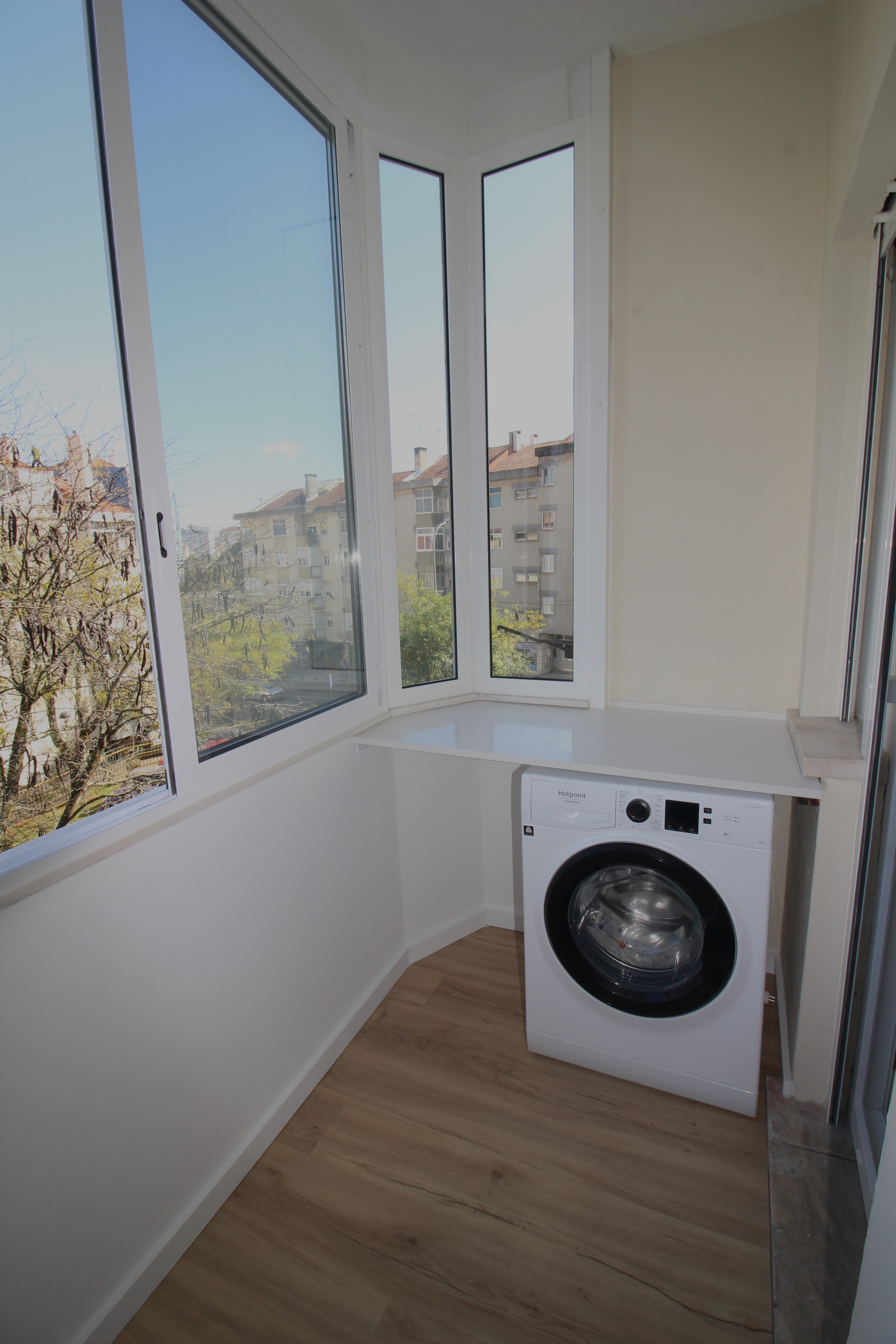 • Cozinha equipada com Placa Elétrica, Forno, Micro-ondas, Combinado, Exaustor, Termoacumulador, Máquinas de Lavar Roupa e Louça